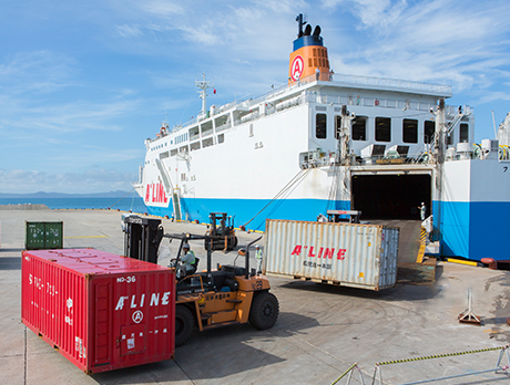 当社の場合、船舶を利用して行う輸送全般を指します。荷物を港荷集め、船に乗せ、降ろし、港から運び出す事業です。よりよい物流システムの確立を常に求め続け、安心と信頼をお届けします。